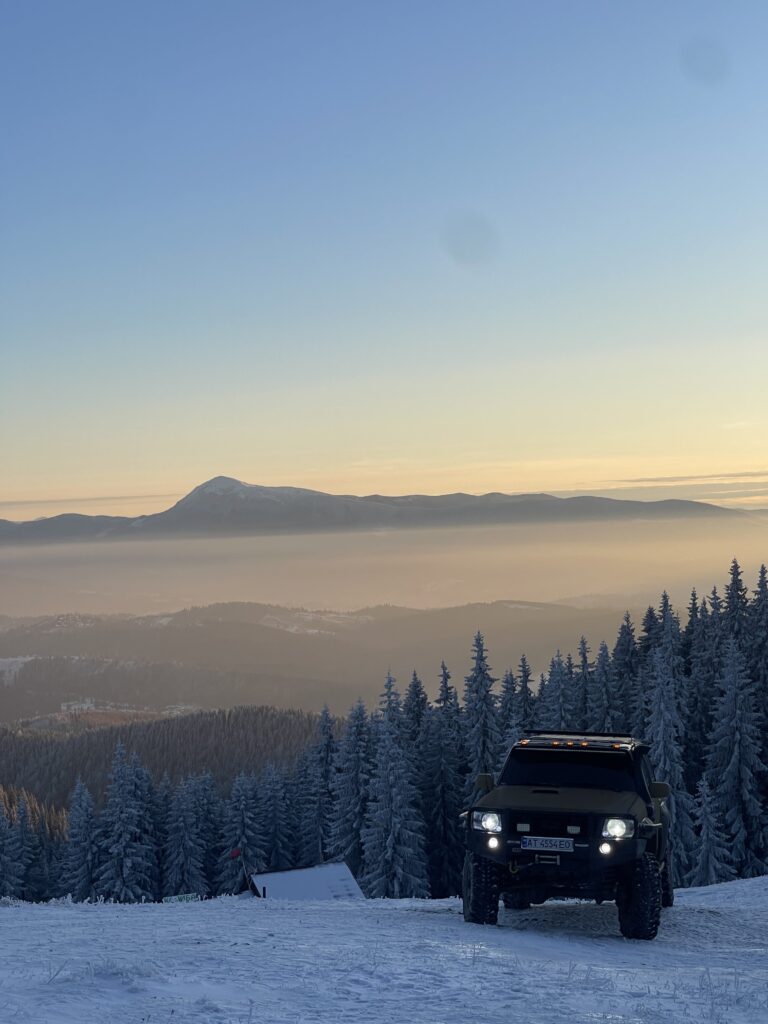 Перша зупинка: ~ оглядова площадка,де побачимо такі гори як: Говерла, Петрос, Драгобрат та багато інших гір. Також можна побачити Буковель. Все це з нашим Джипінг в Буковелі